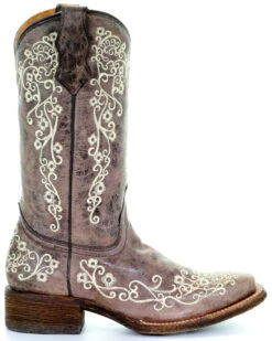 Corral Women’s Floral & Butterfly Embroidered Burnished Tall Western Boots – Snip Toe