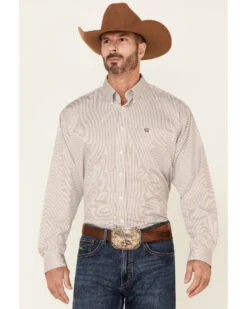Cinch Men’s Beige Tencel Stripe Long Sleeve Button-Down Western ShirtÂ