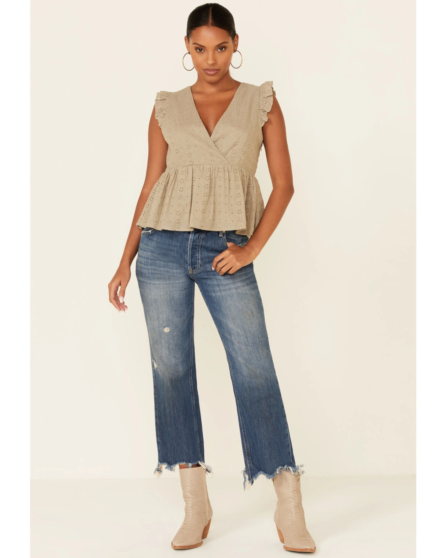 Wishlist Women’s Gucci Eyelet Ruffle Surplice Short Sleeve Babydoll Top